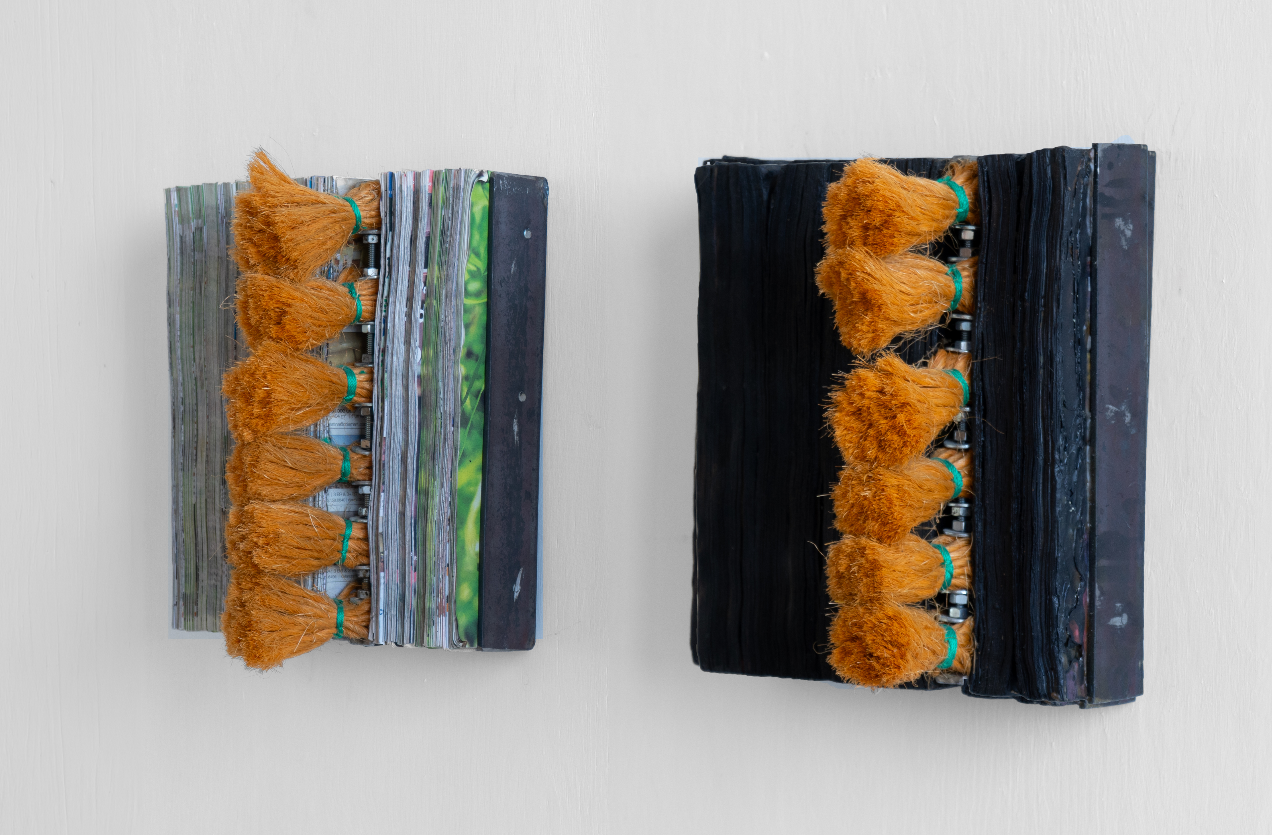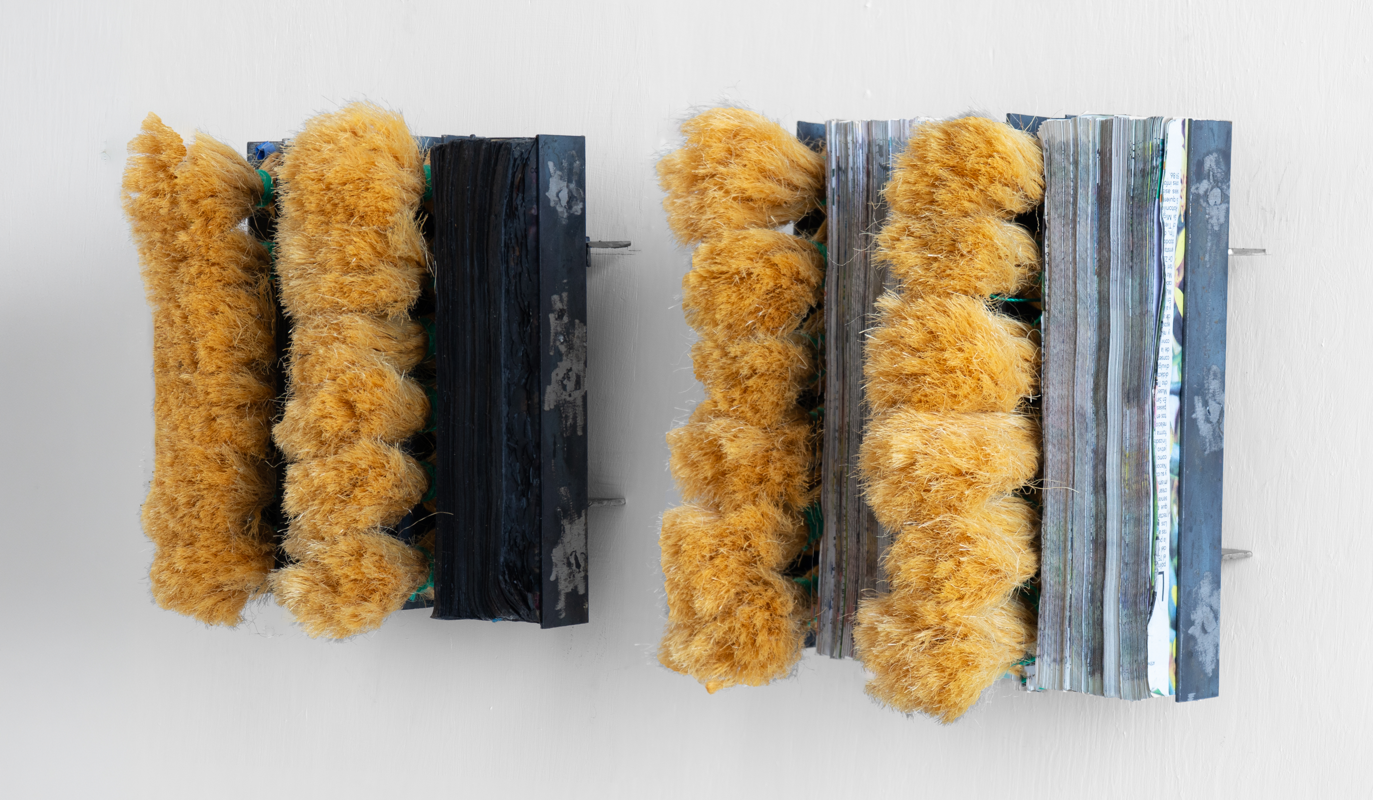 Experimental 33 and 34 (left) Experimental 35 and 36 (right) Newpspaper, Baling Twine, Steel 11.5 x 11.75 x 6.5" |