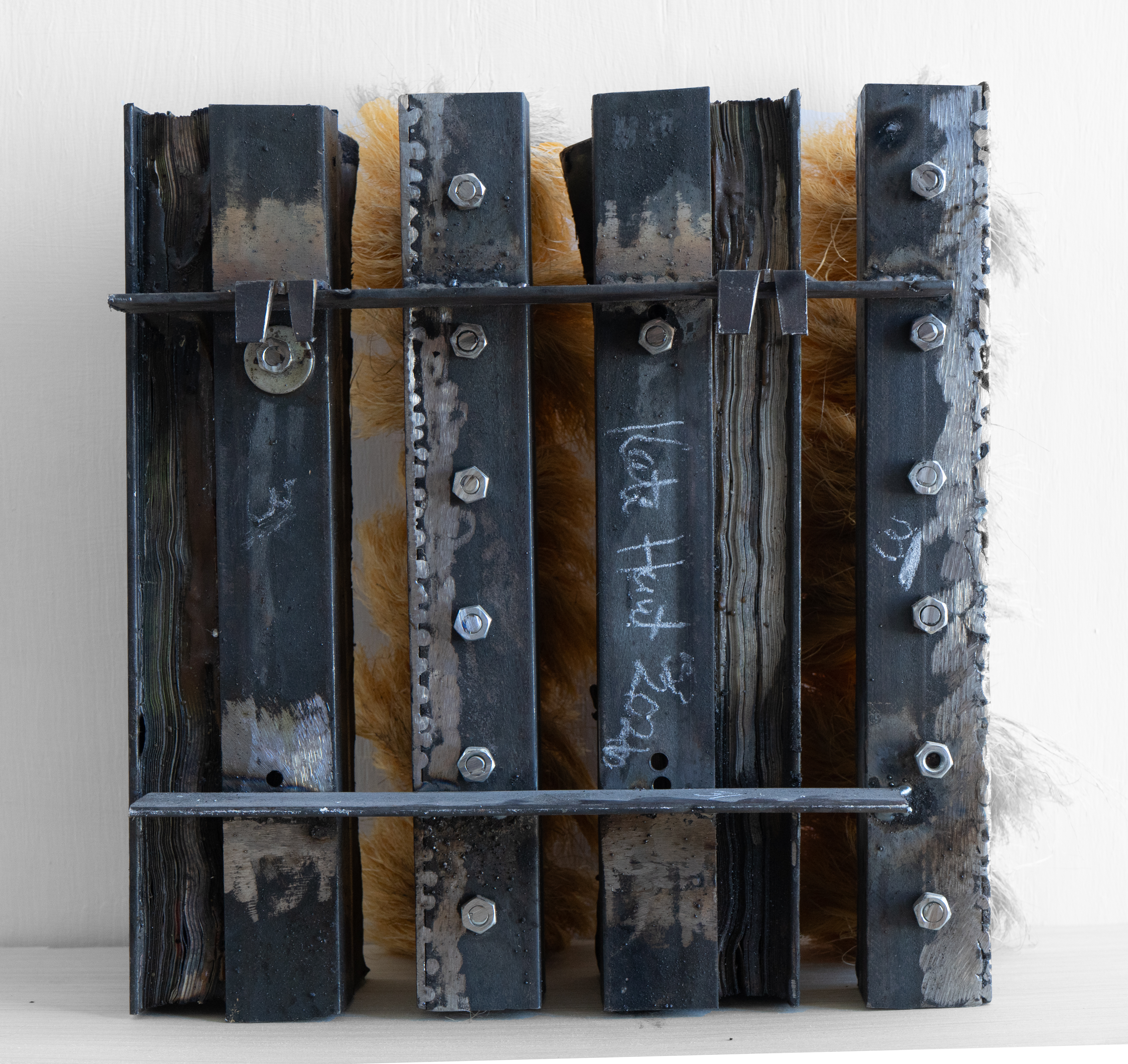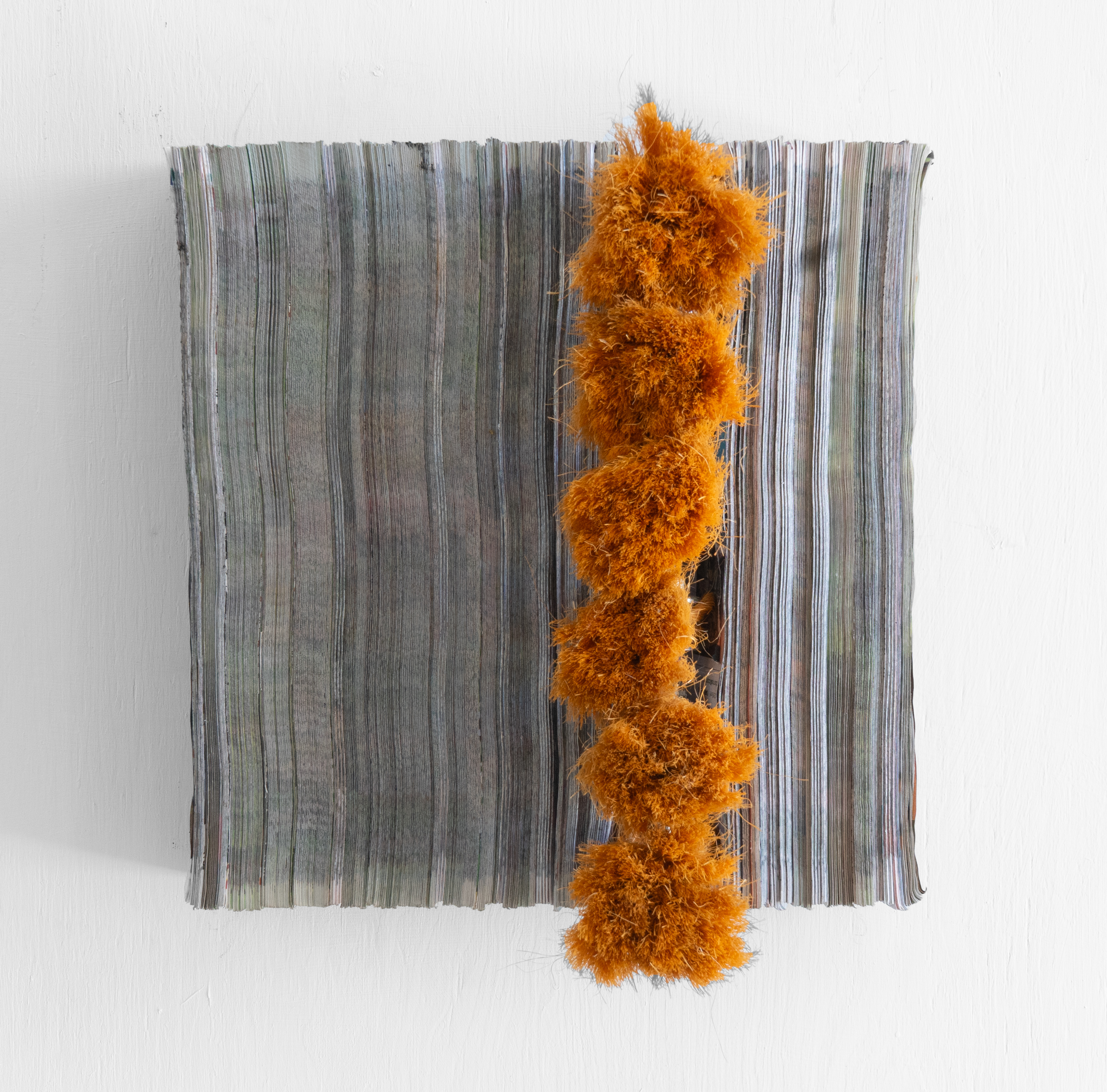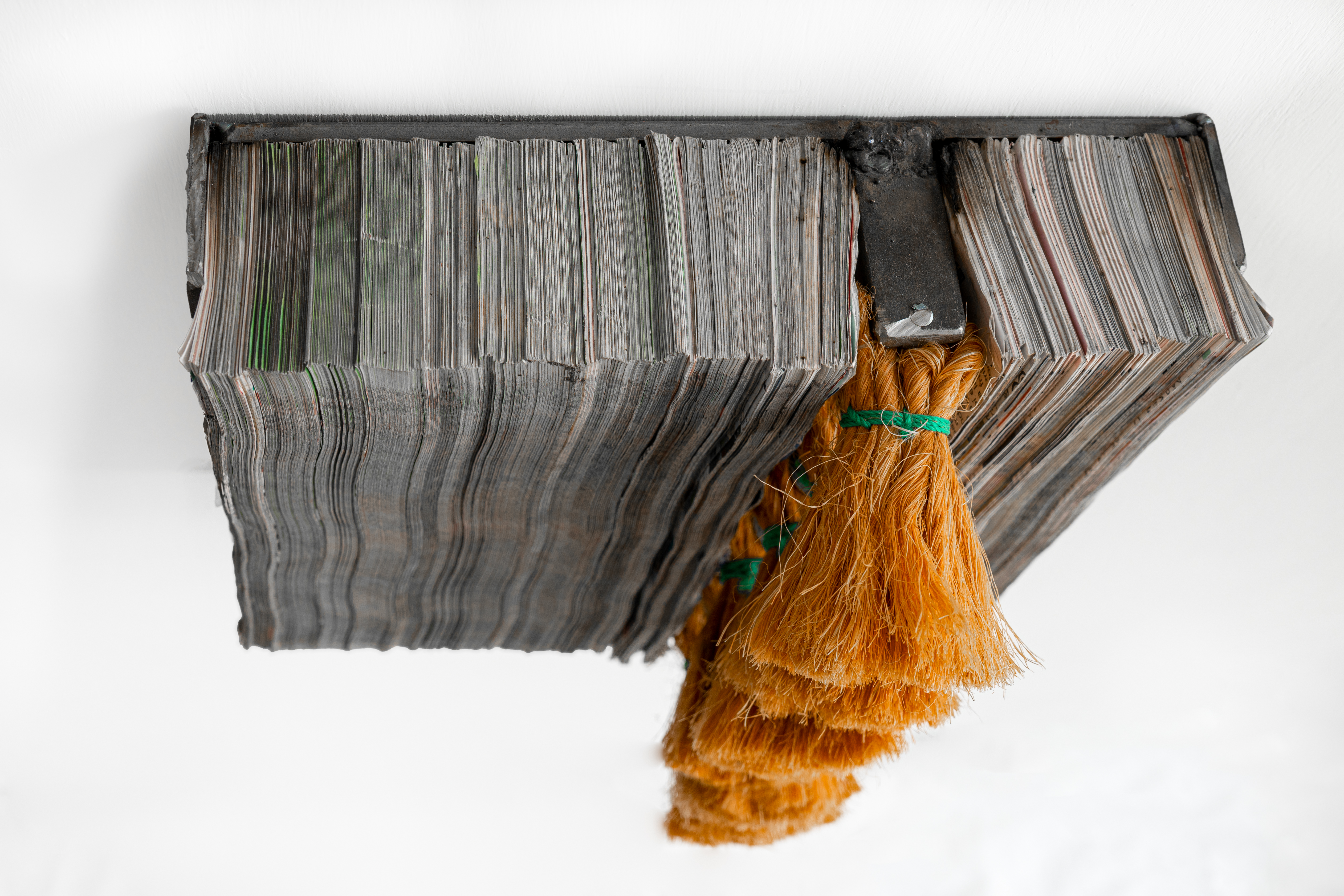 Experimental 31 Newpspaper, Baling Twine, Encaustic, Steel 11.5 x 12 x 6.5" |