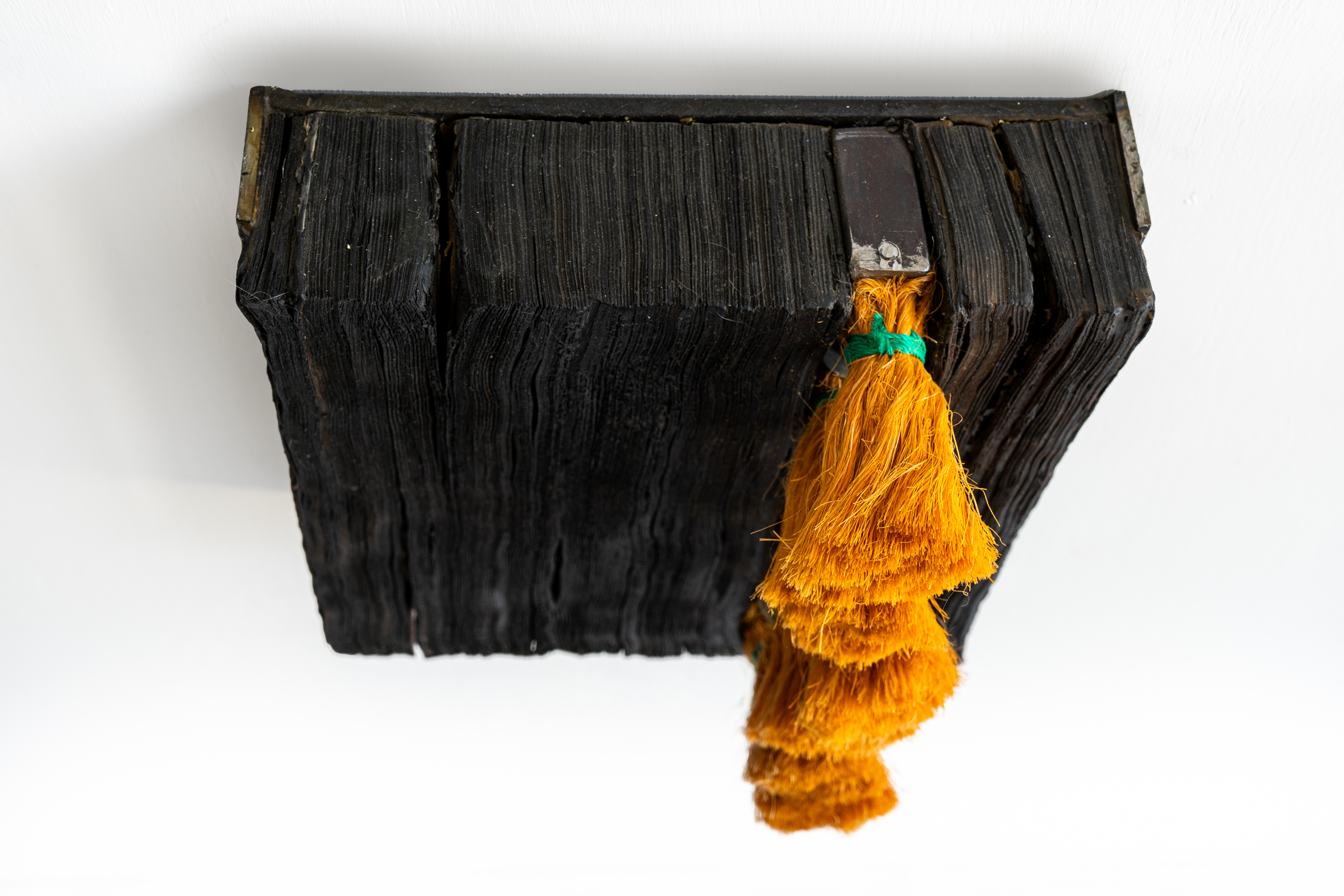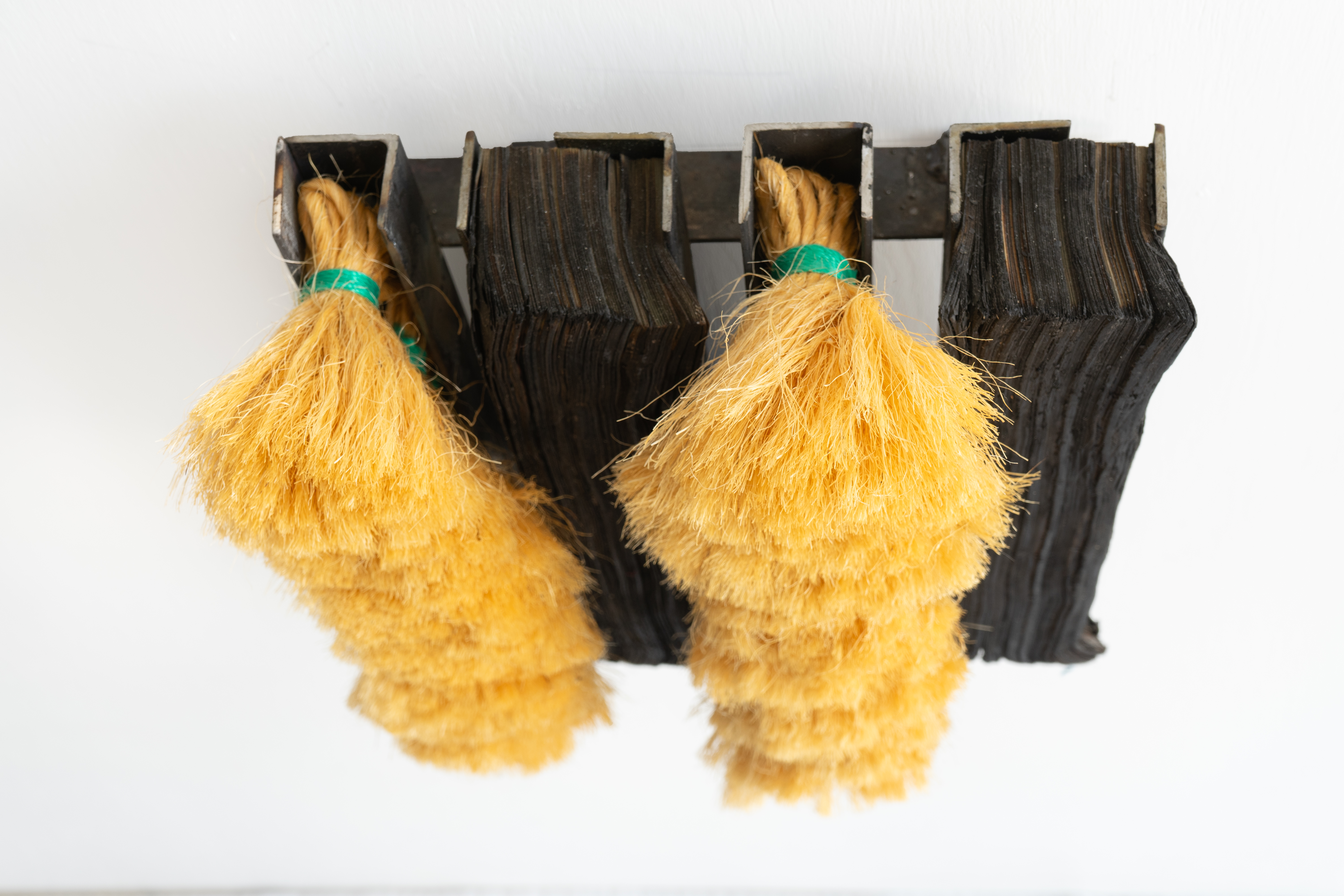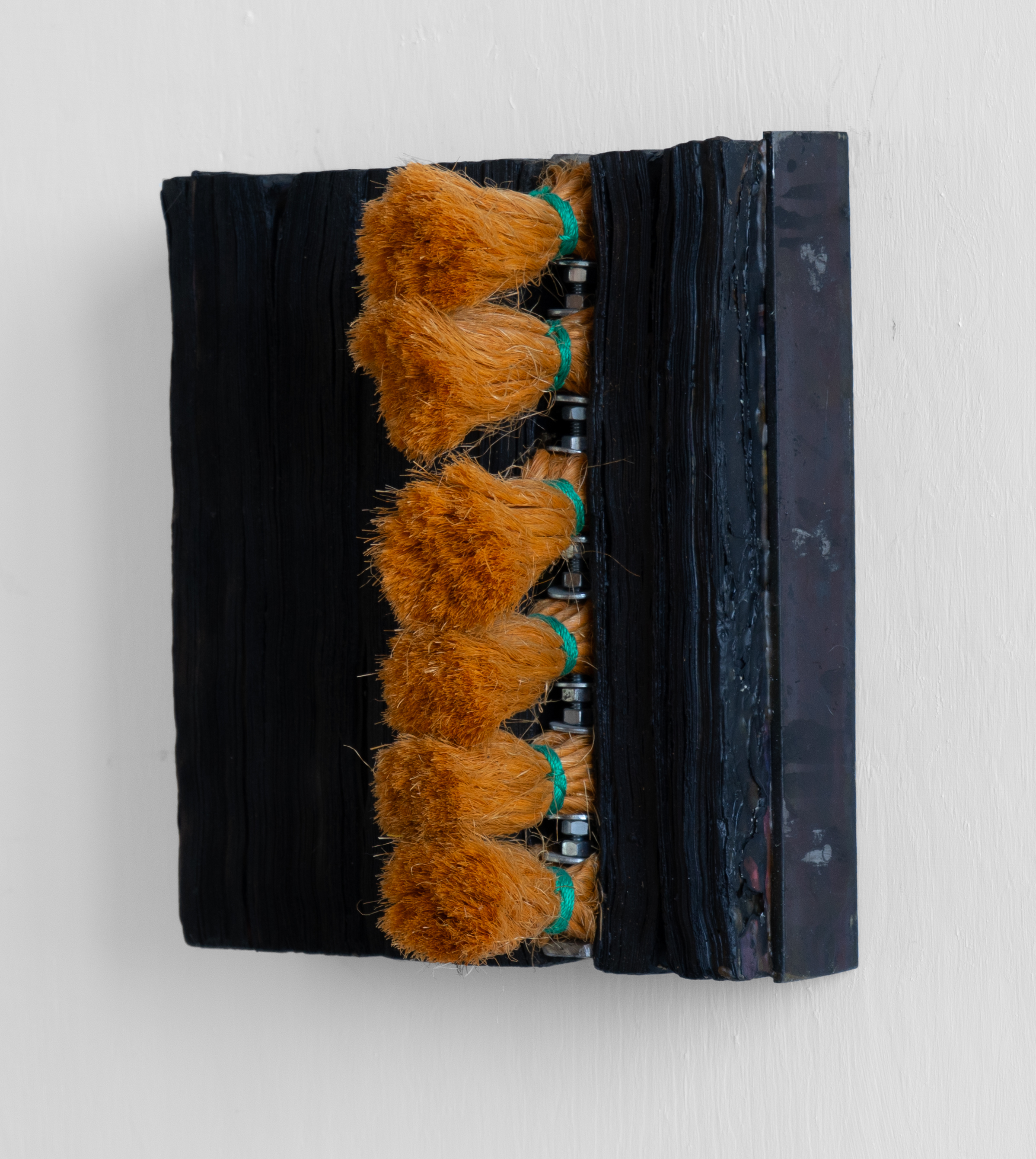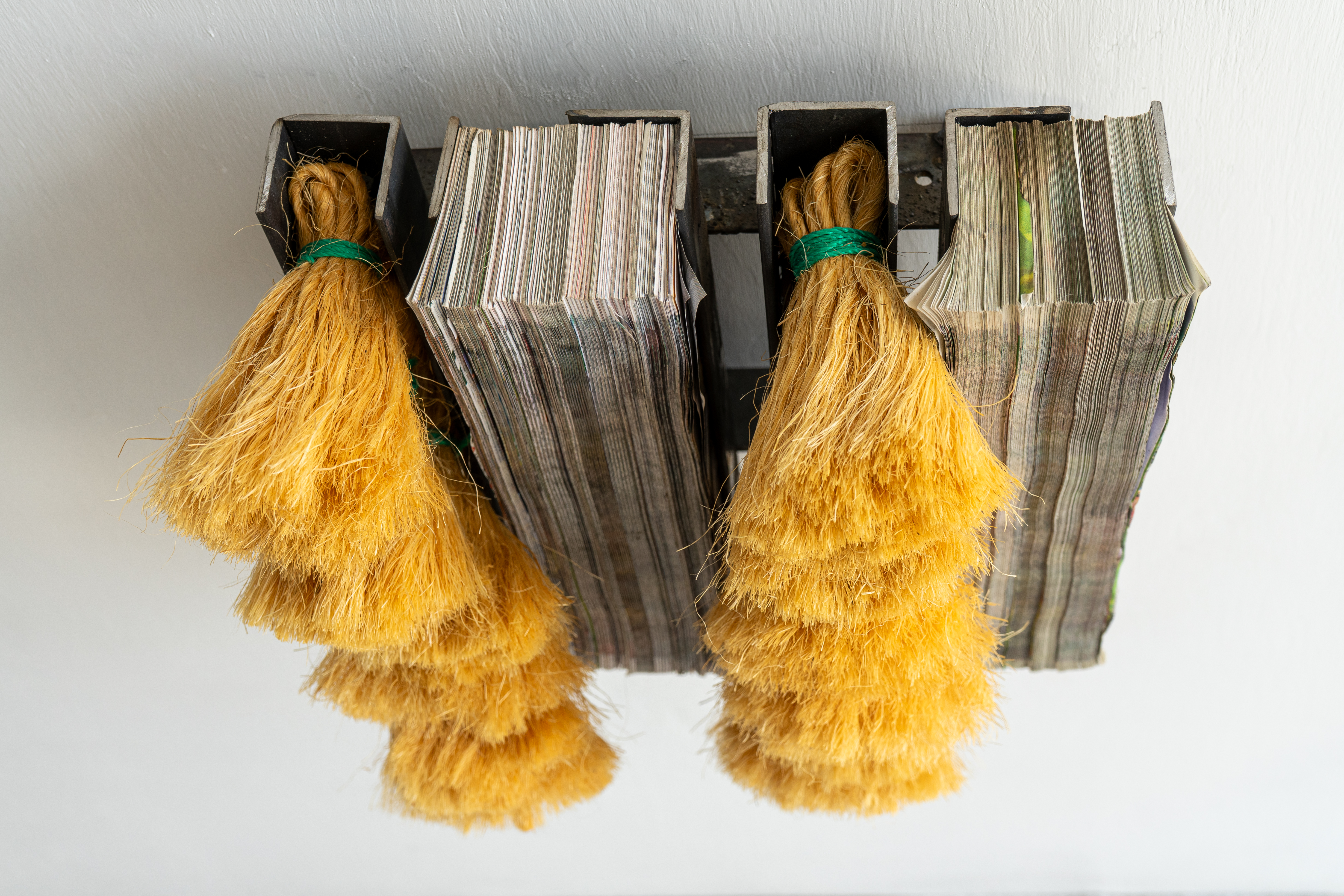 Experimental 31 Newpspaper, Baling Twine, Encaustic, Steel 11.5 x 12 x 6.5" |