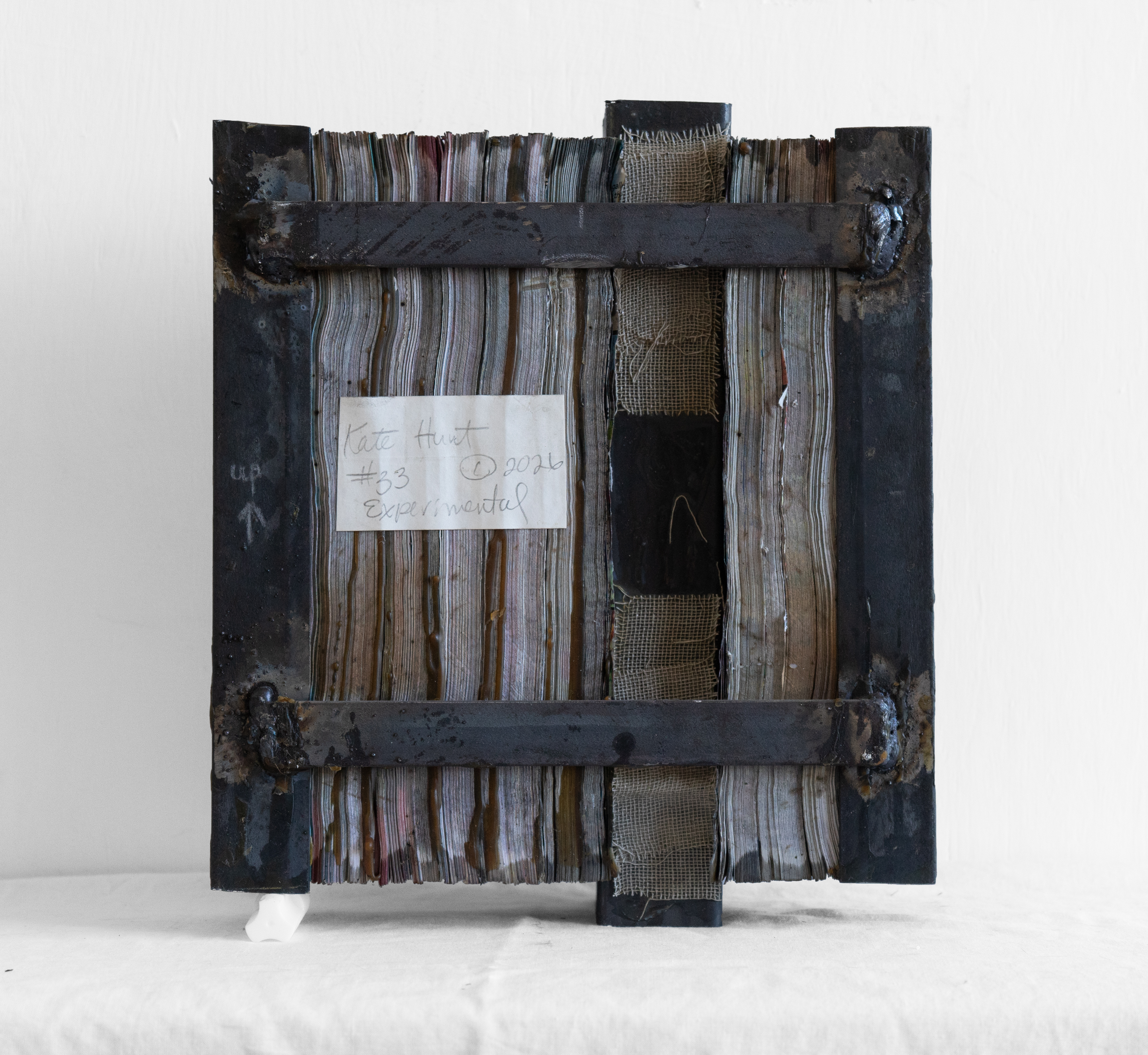 Experimental 33 Newpspaper, Encaustic, Steel 13 x 11.5 x 4" |