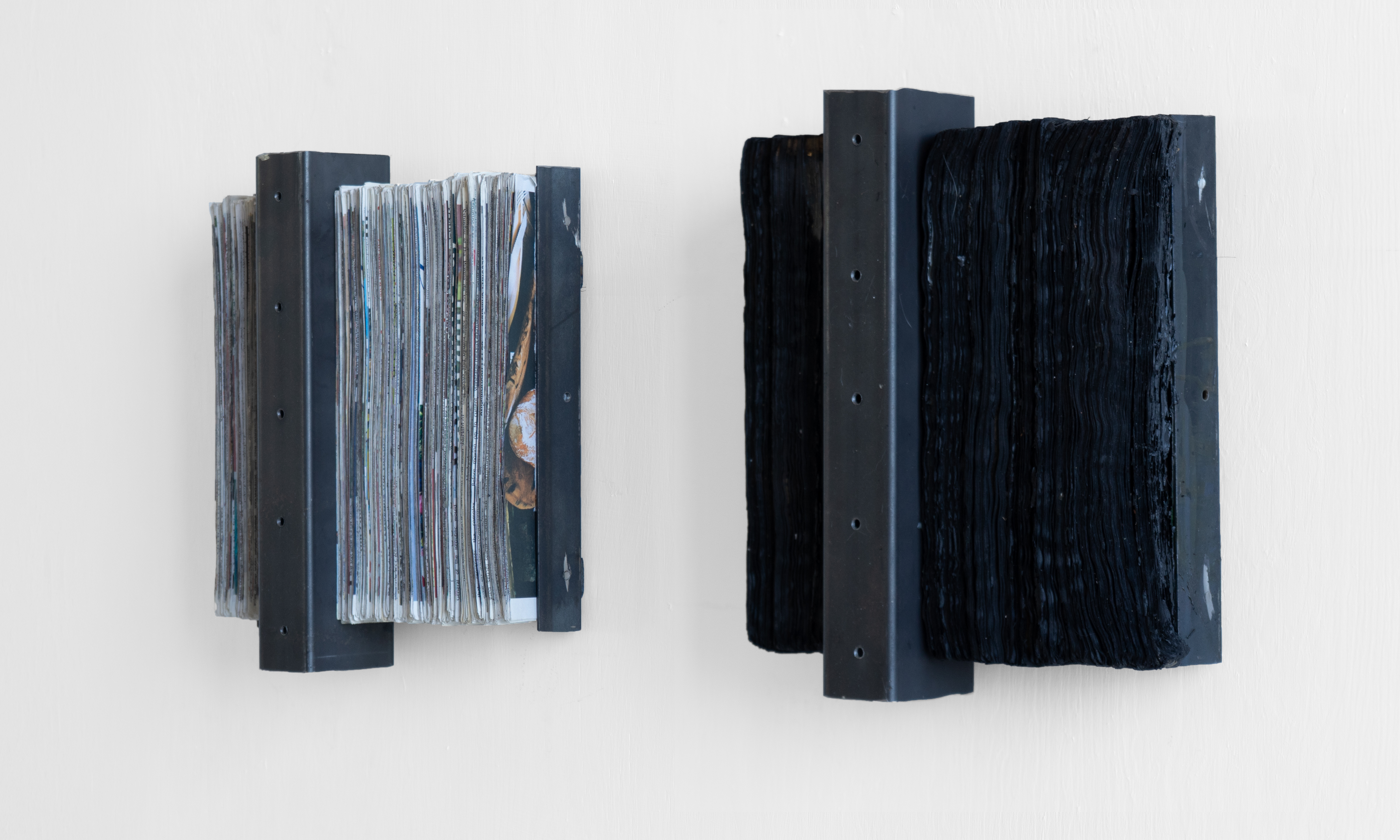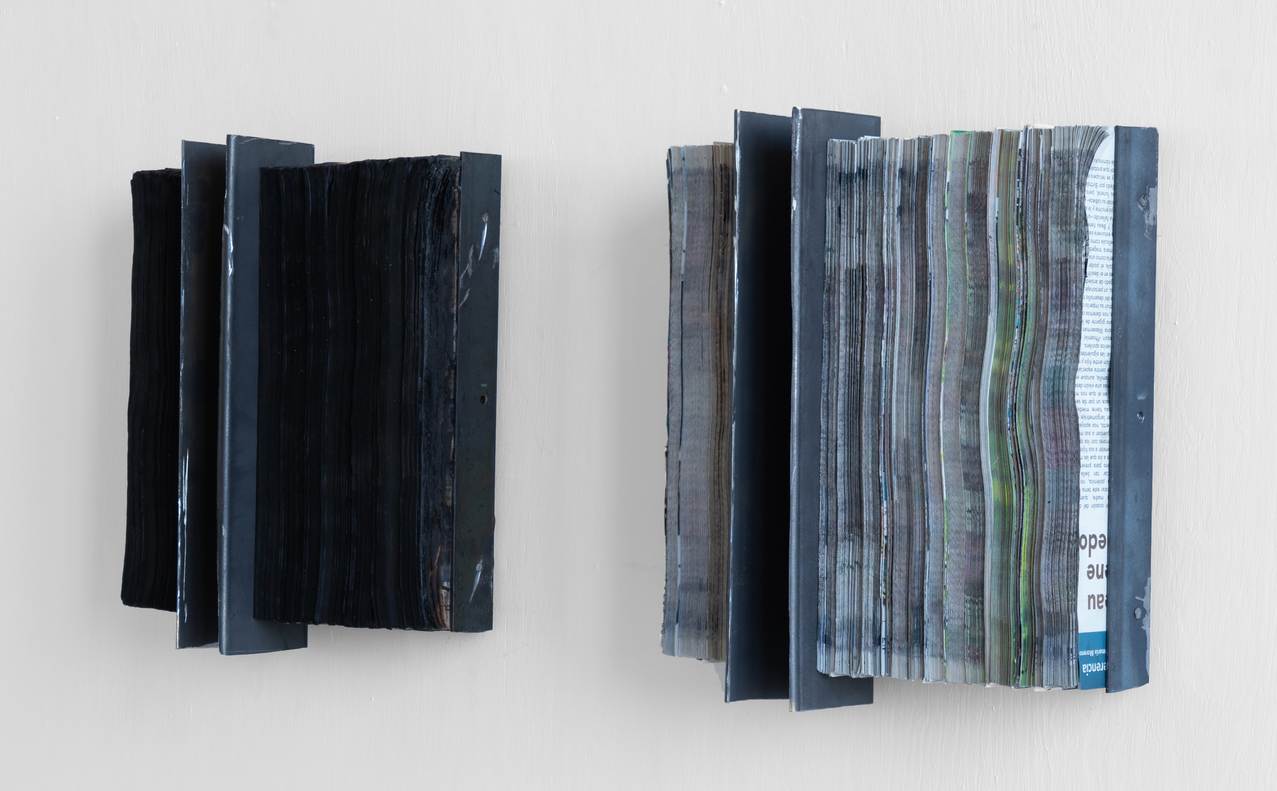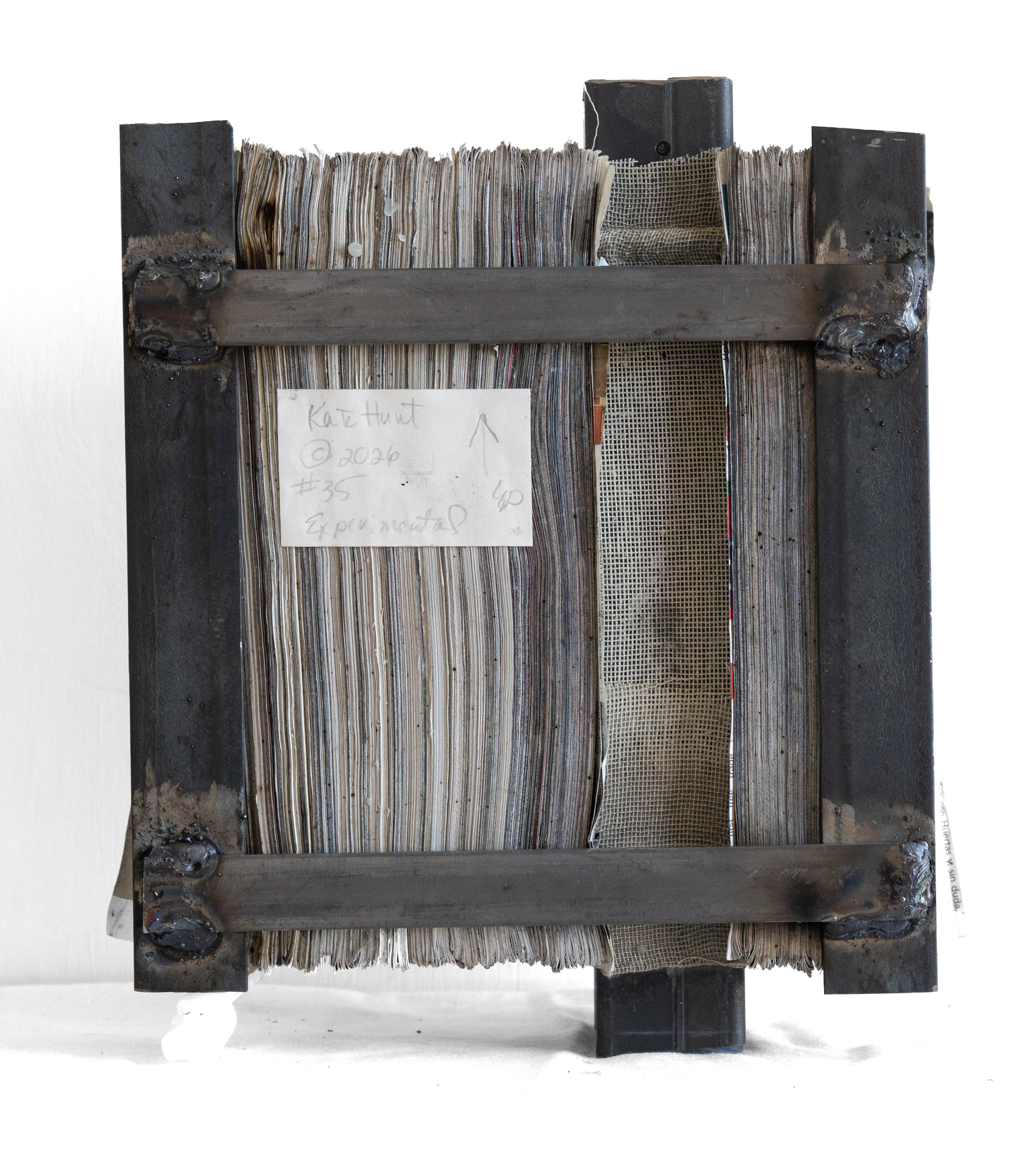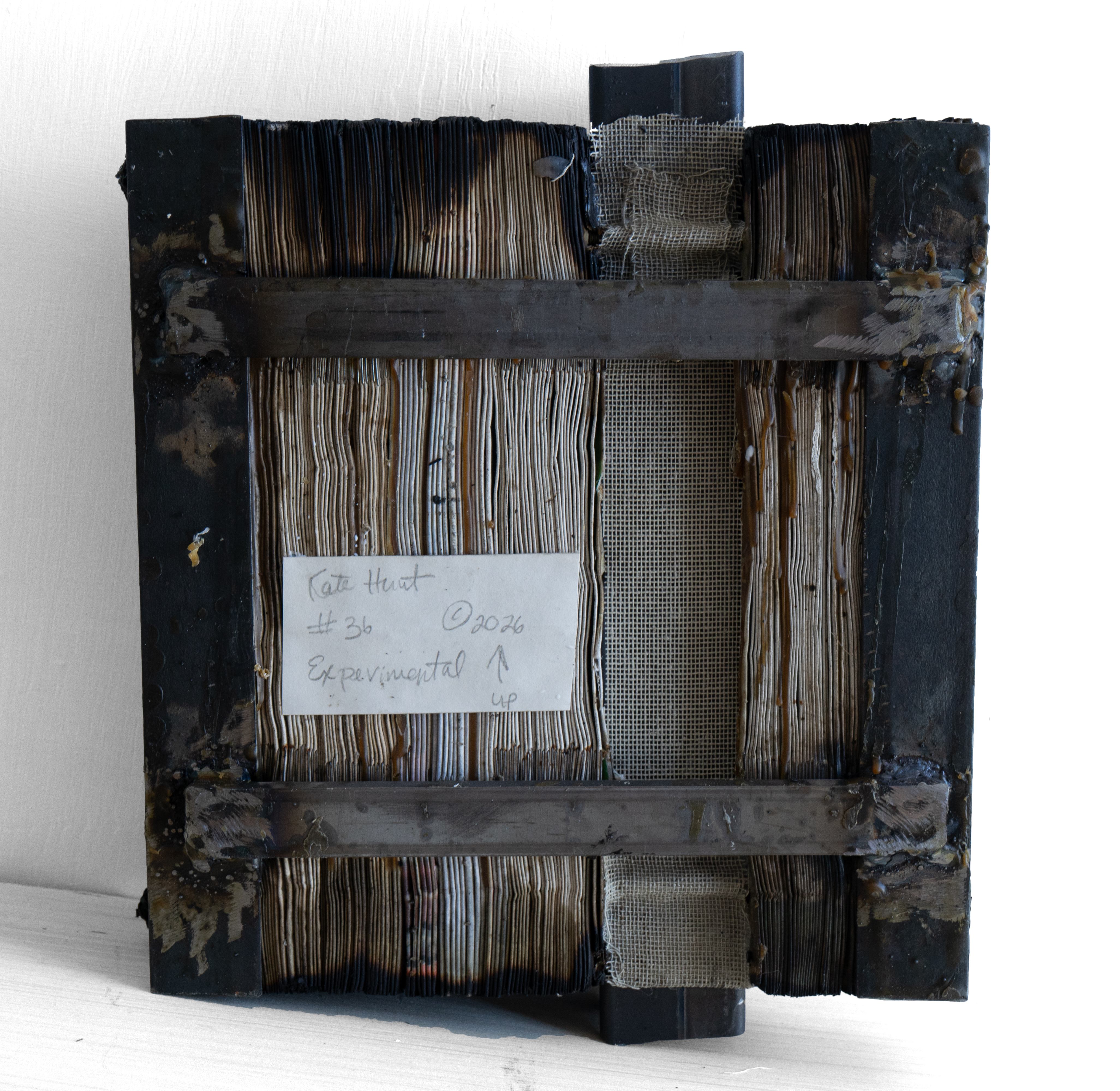 Experimental 36 Newpspaper, Encaustic, Steel 13 x 11.4 x 4" |
