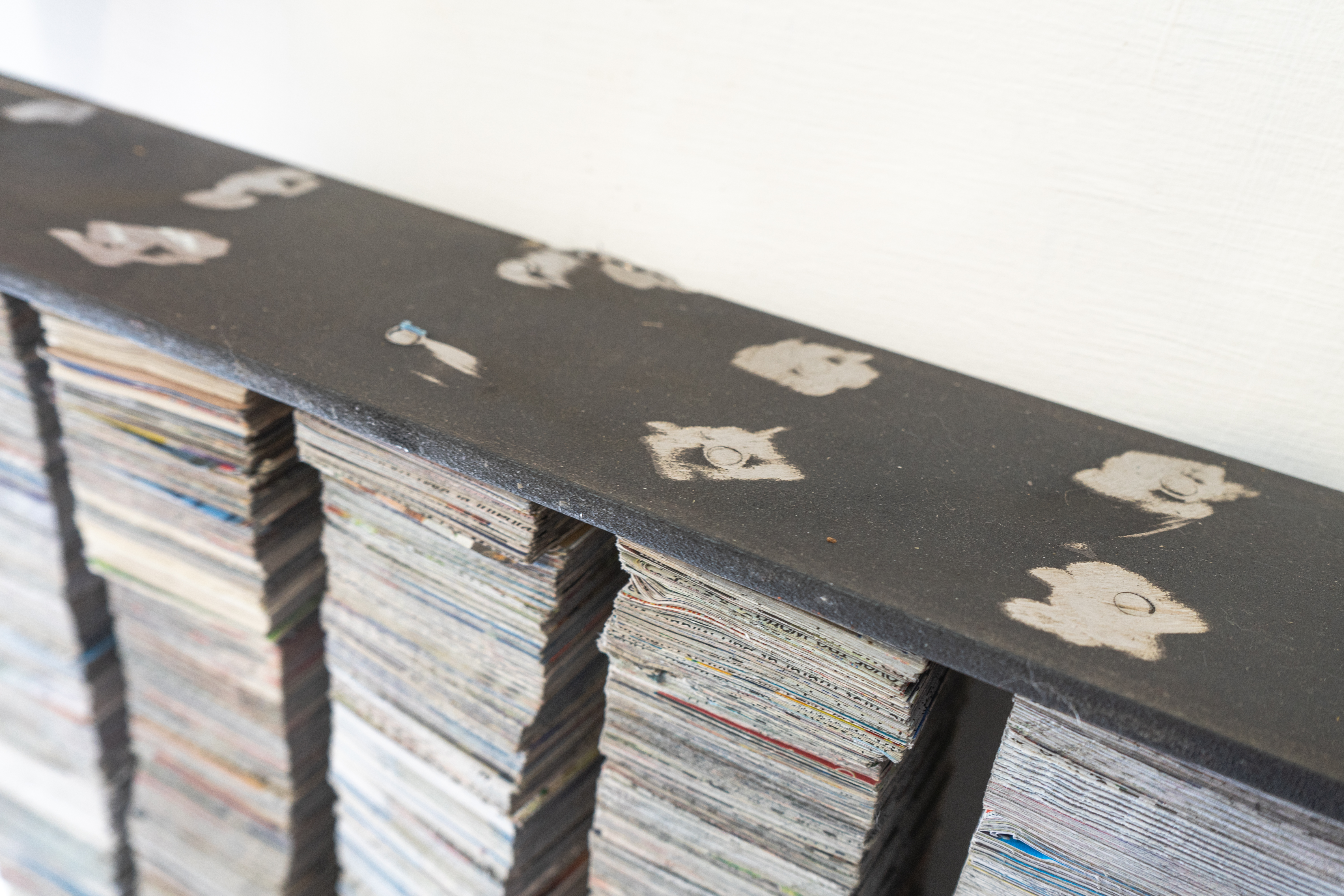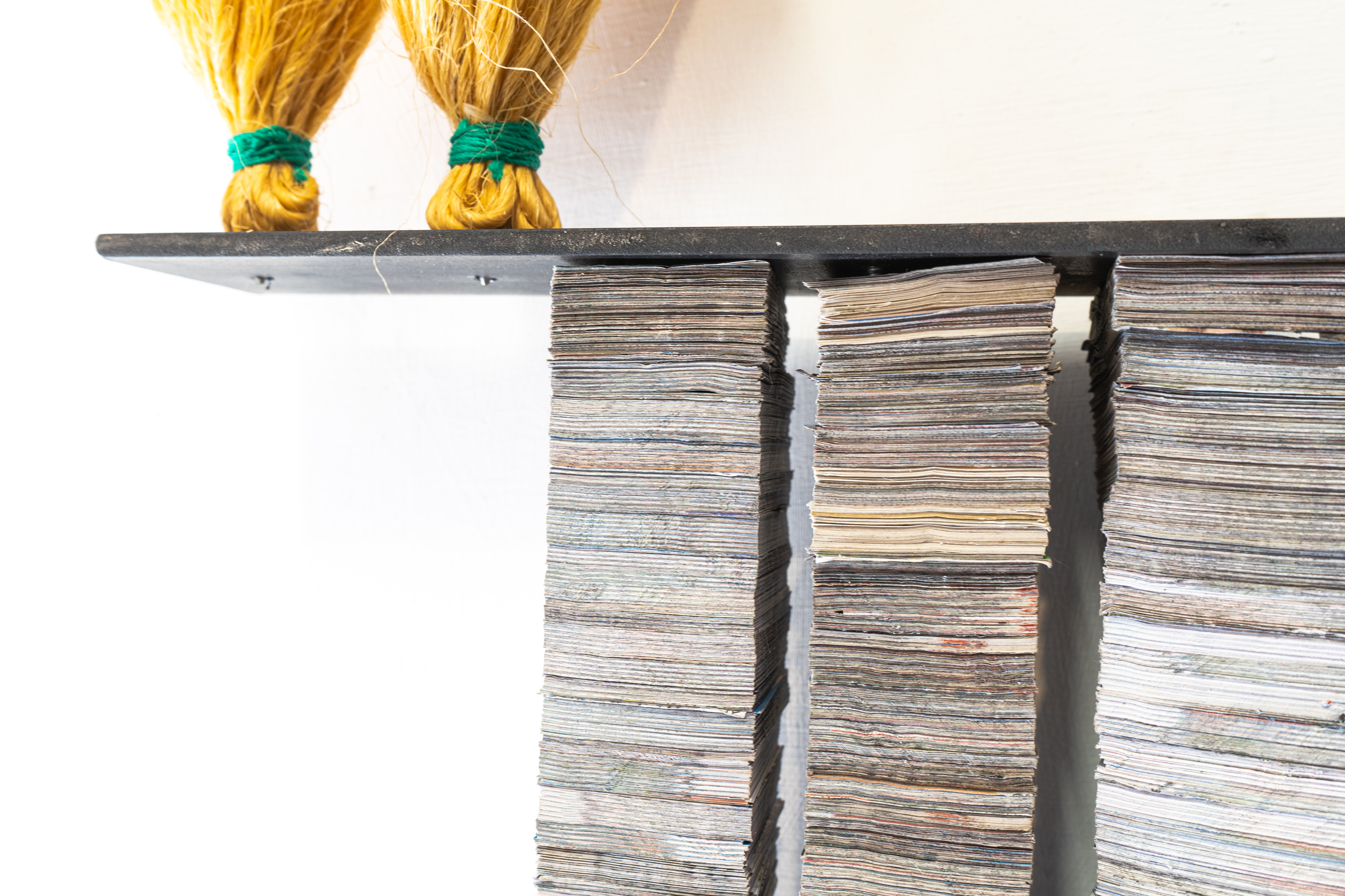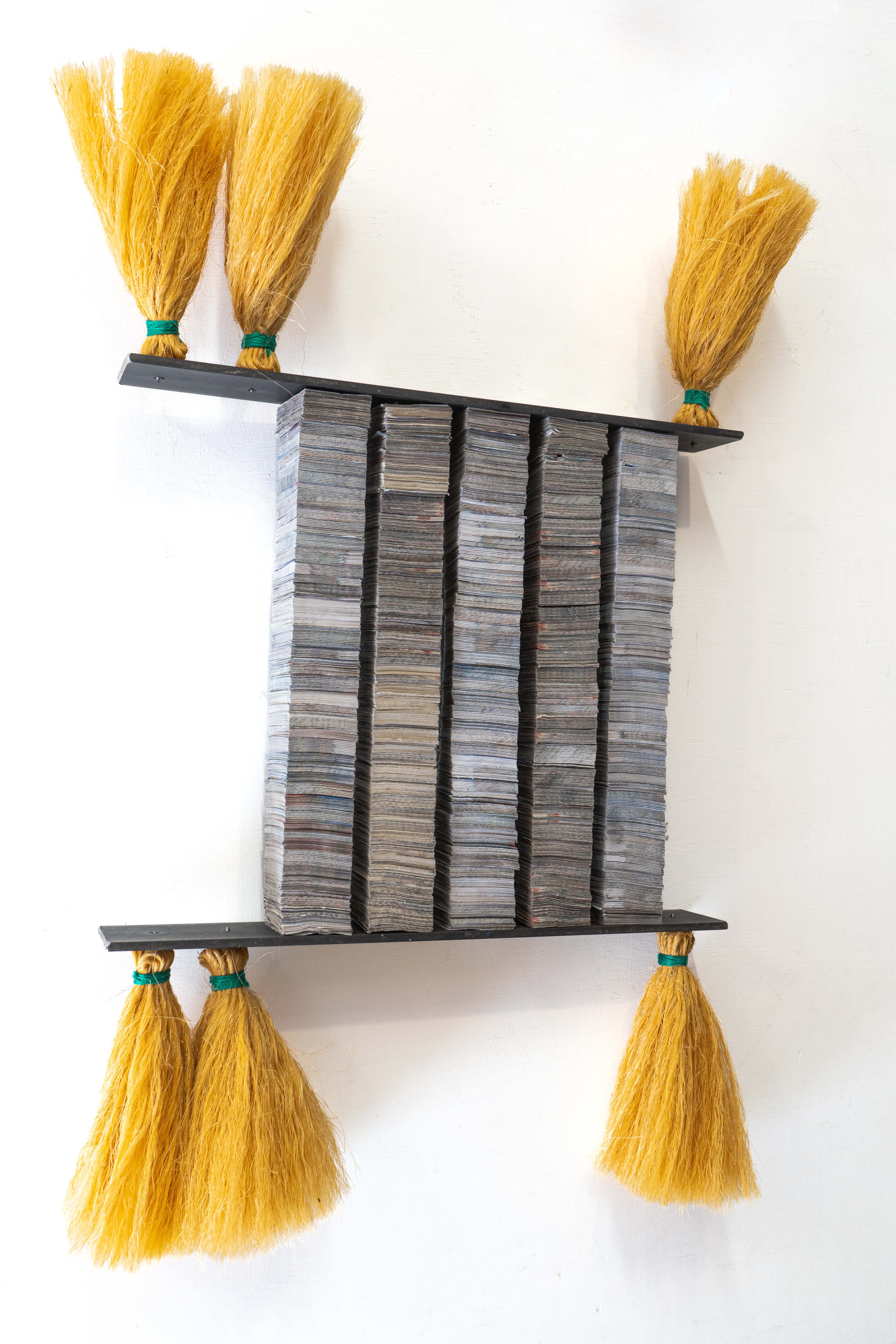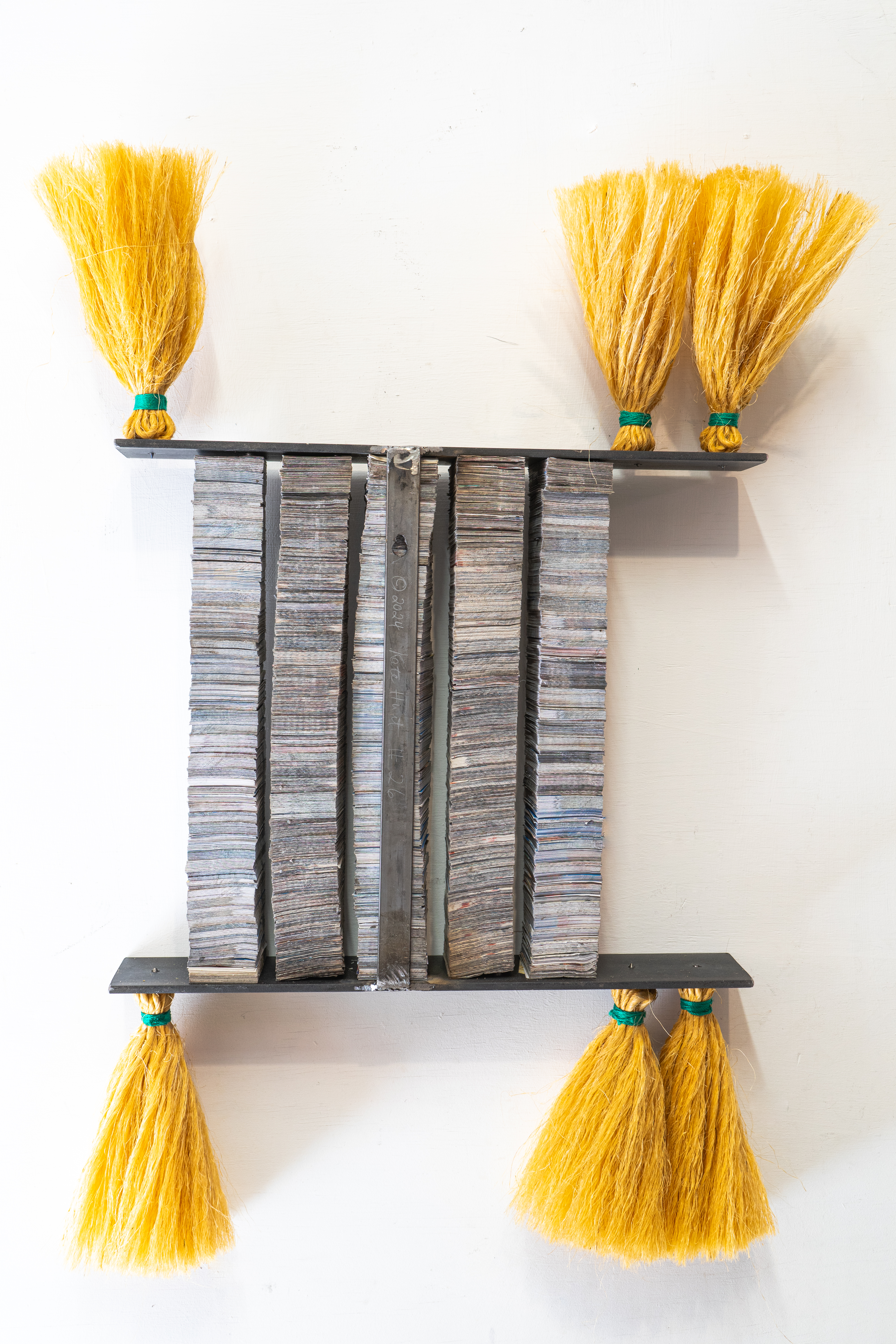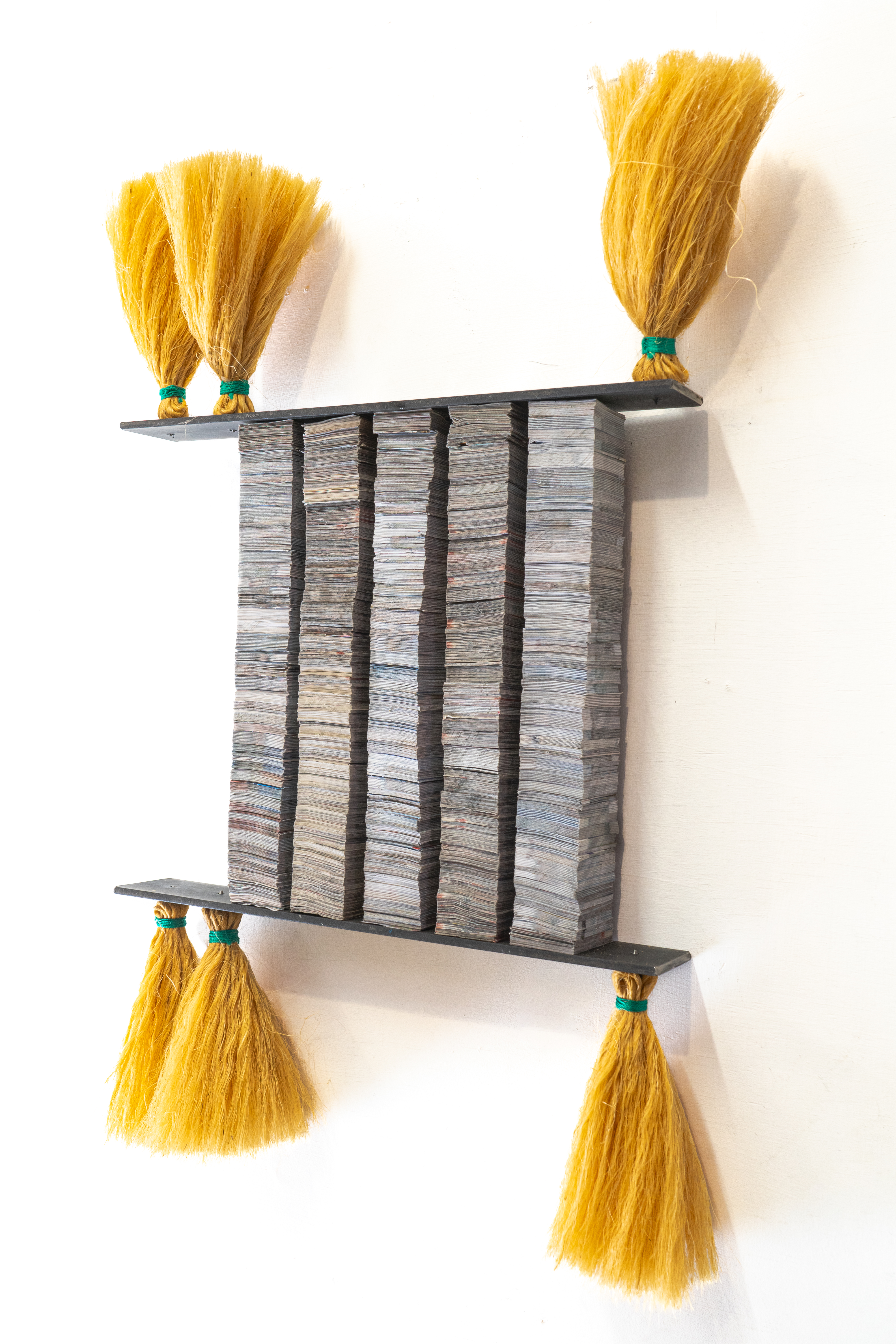 Newspaper, baling twine & steel 34"x20"x3" 87x50x8cm Click on any images for a larger image |