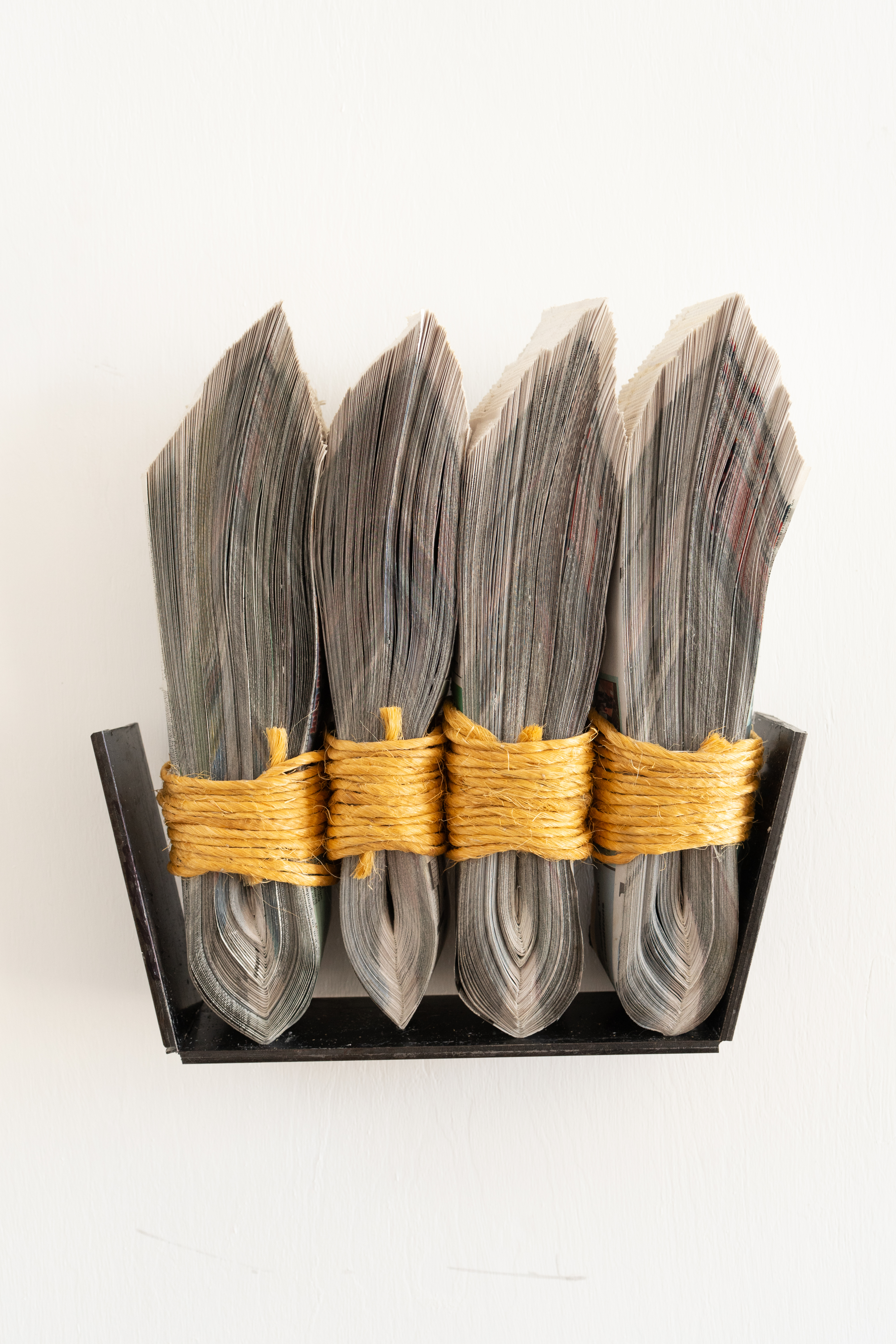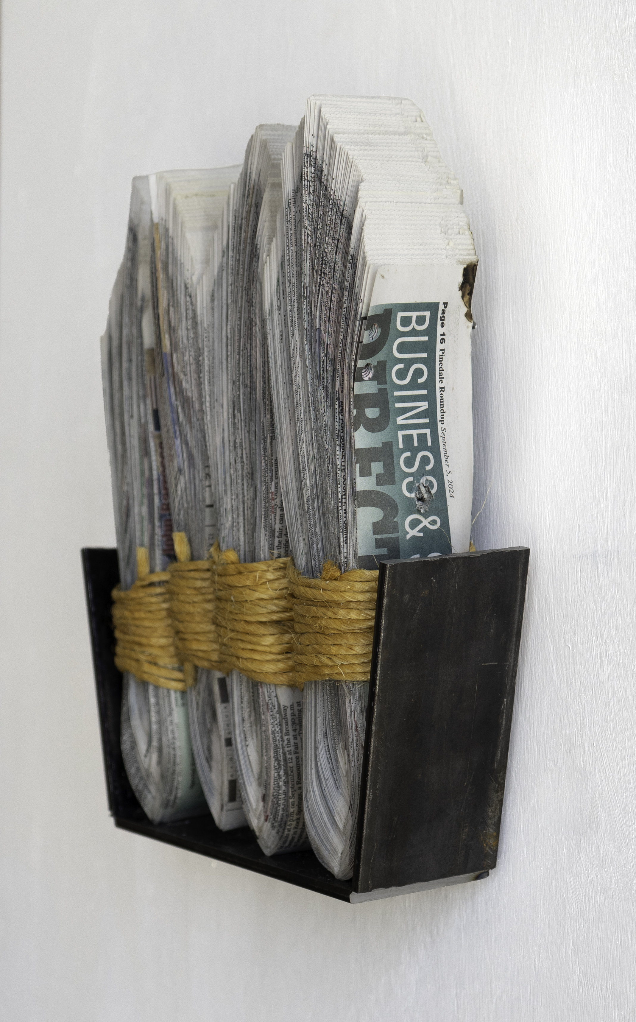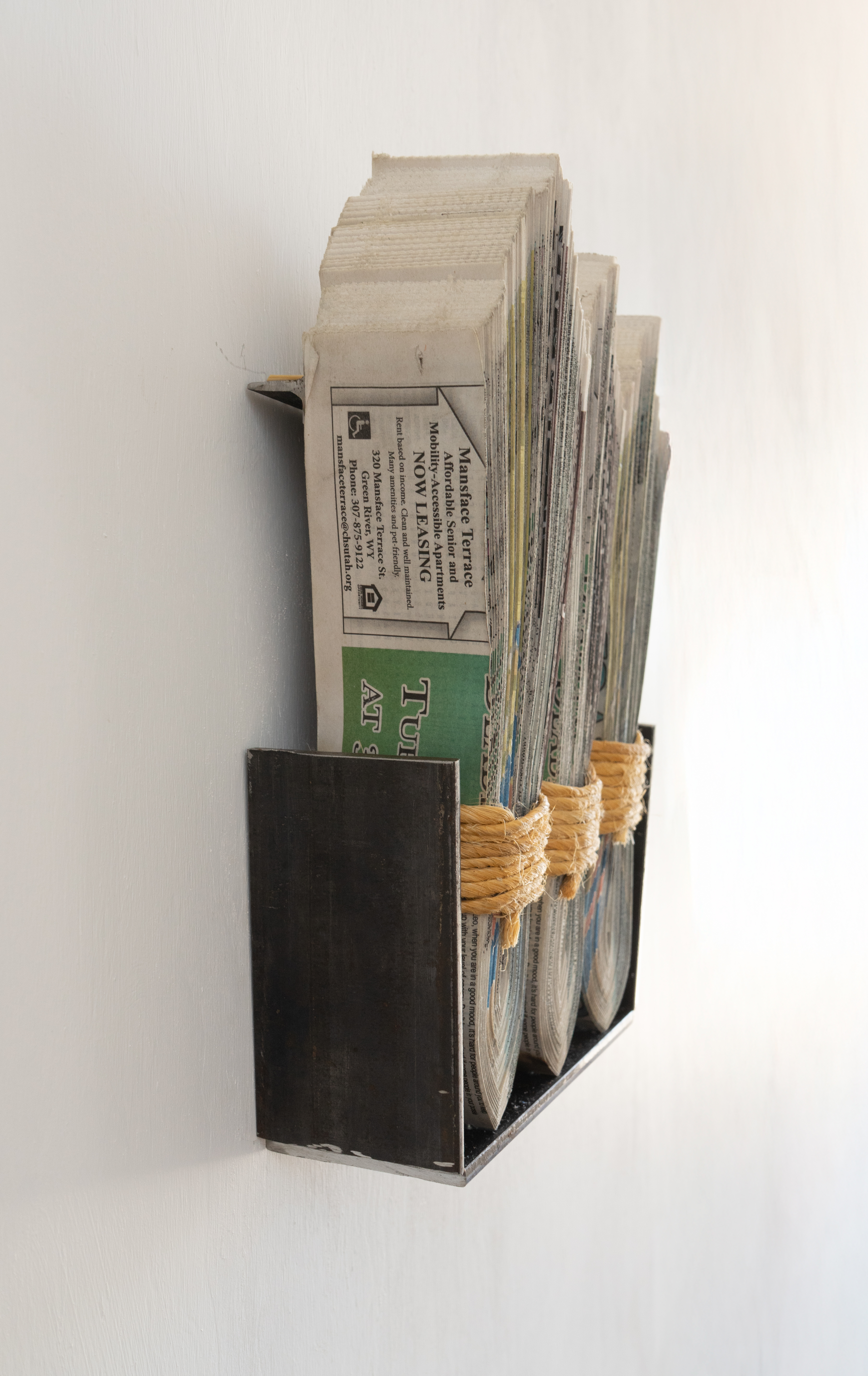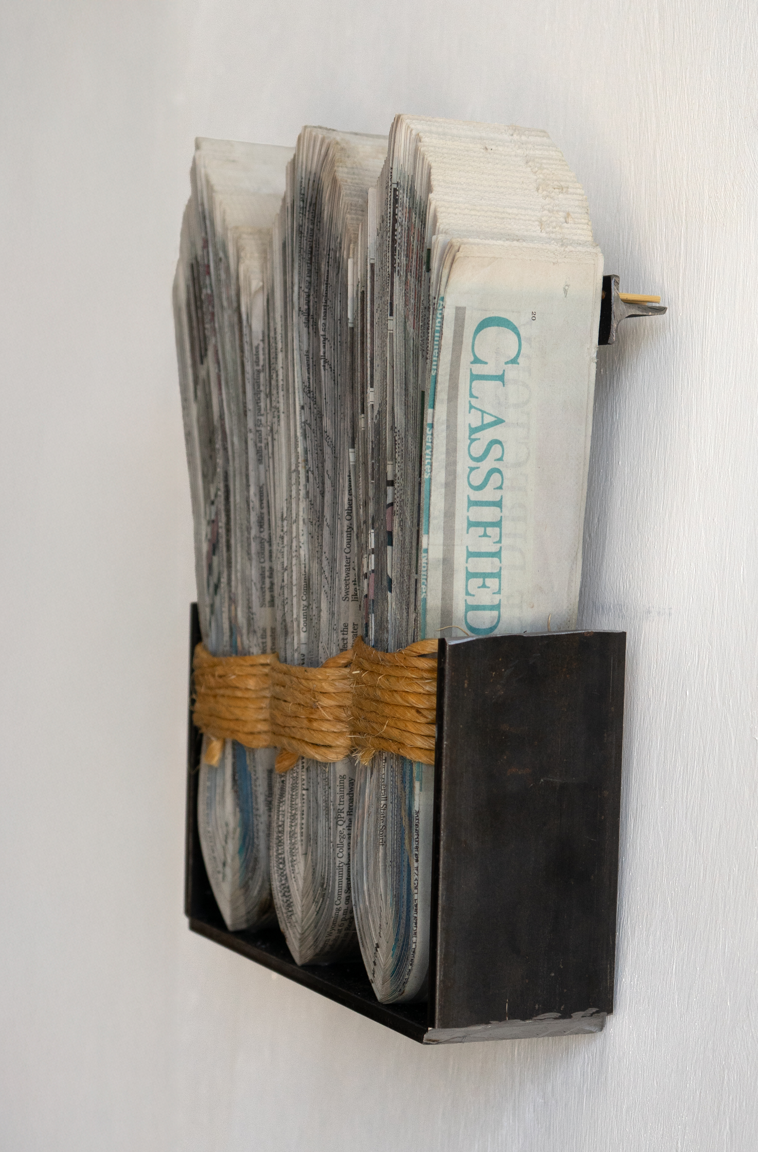 Newspaper, Baling Twine, Steel 13-1/2x10x3" 35x26x10CM and 13-1/2x13x3" 35x26x10cm Click on any image for a larger resolution. |