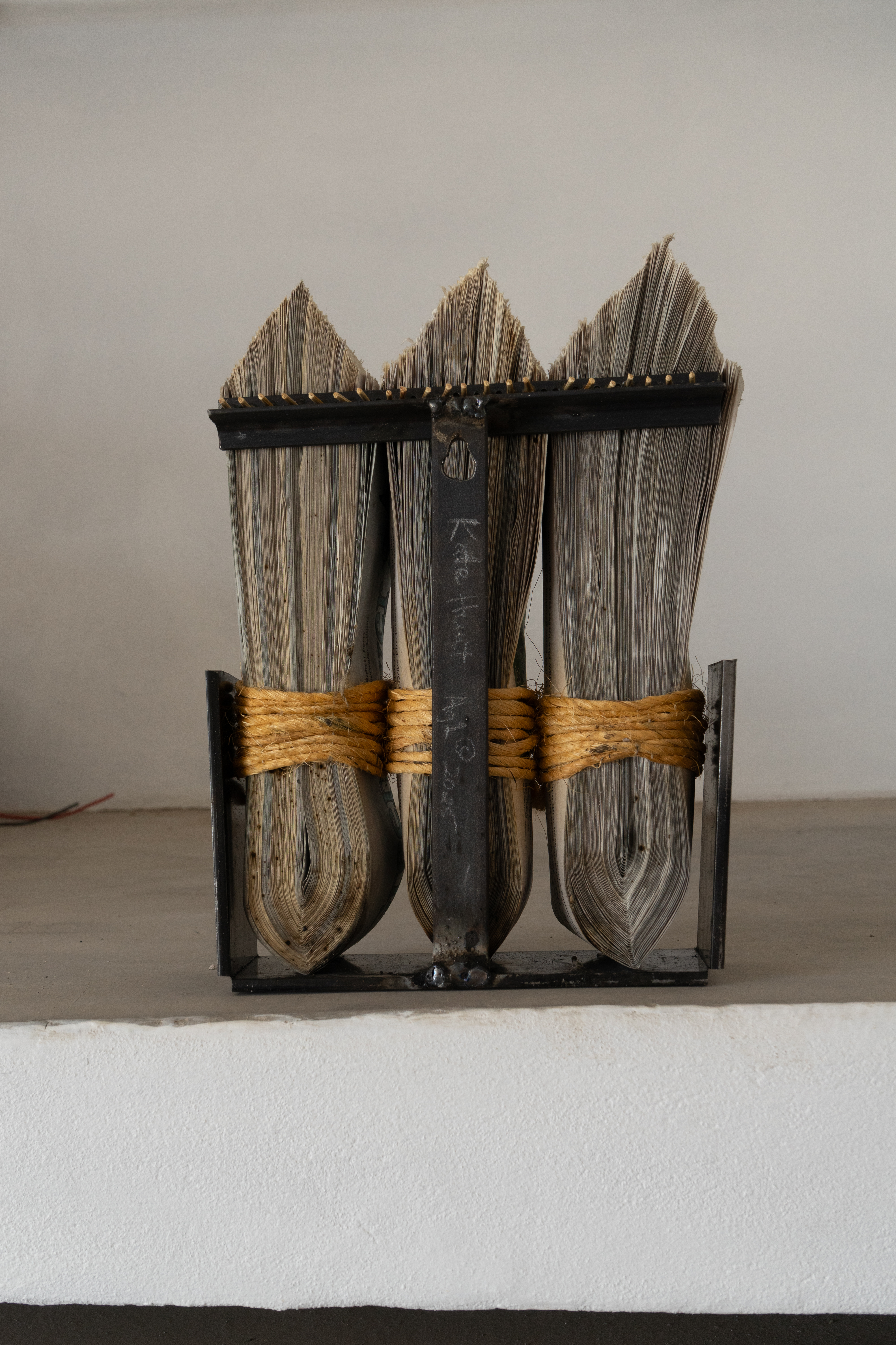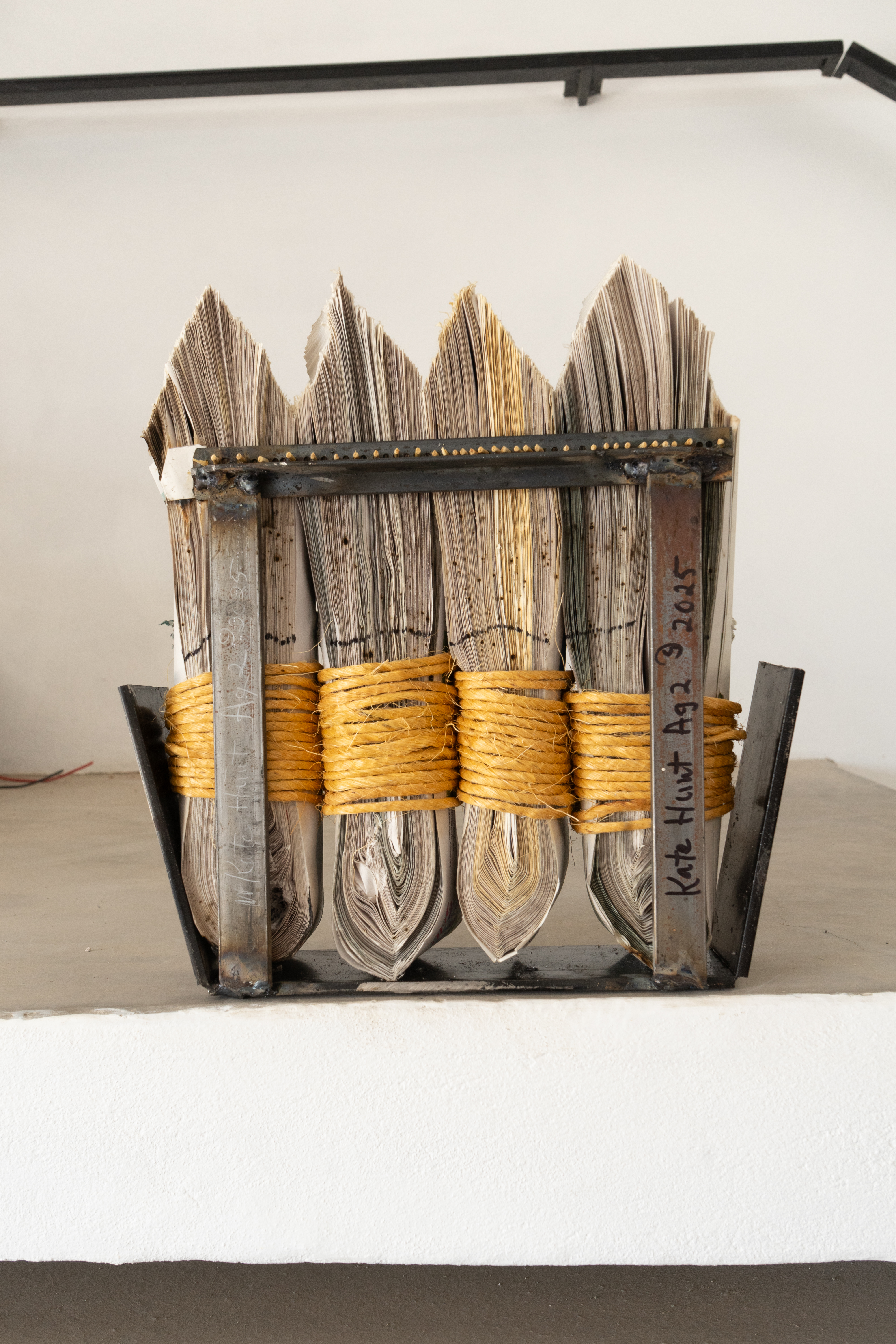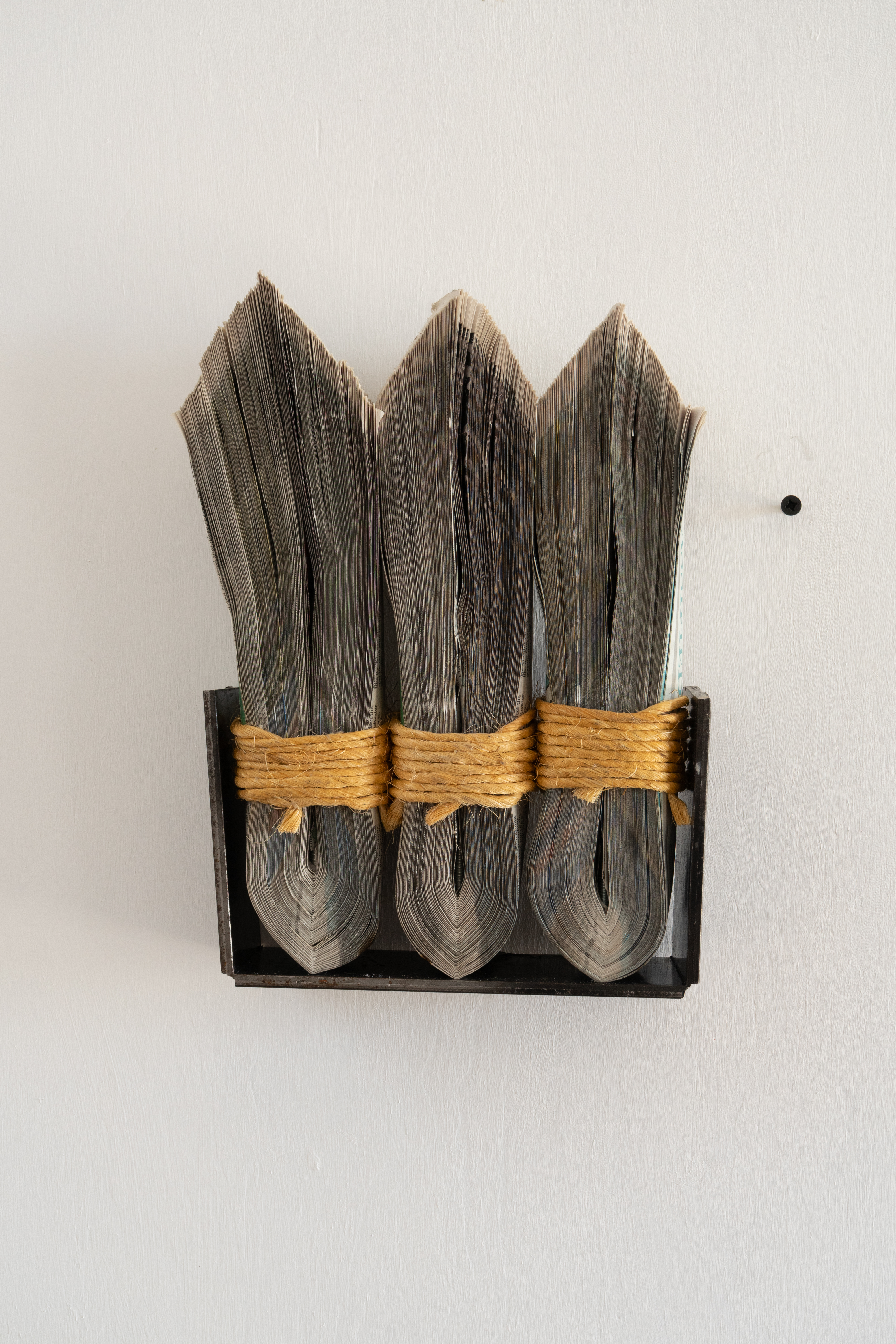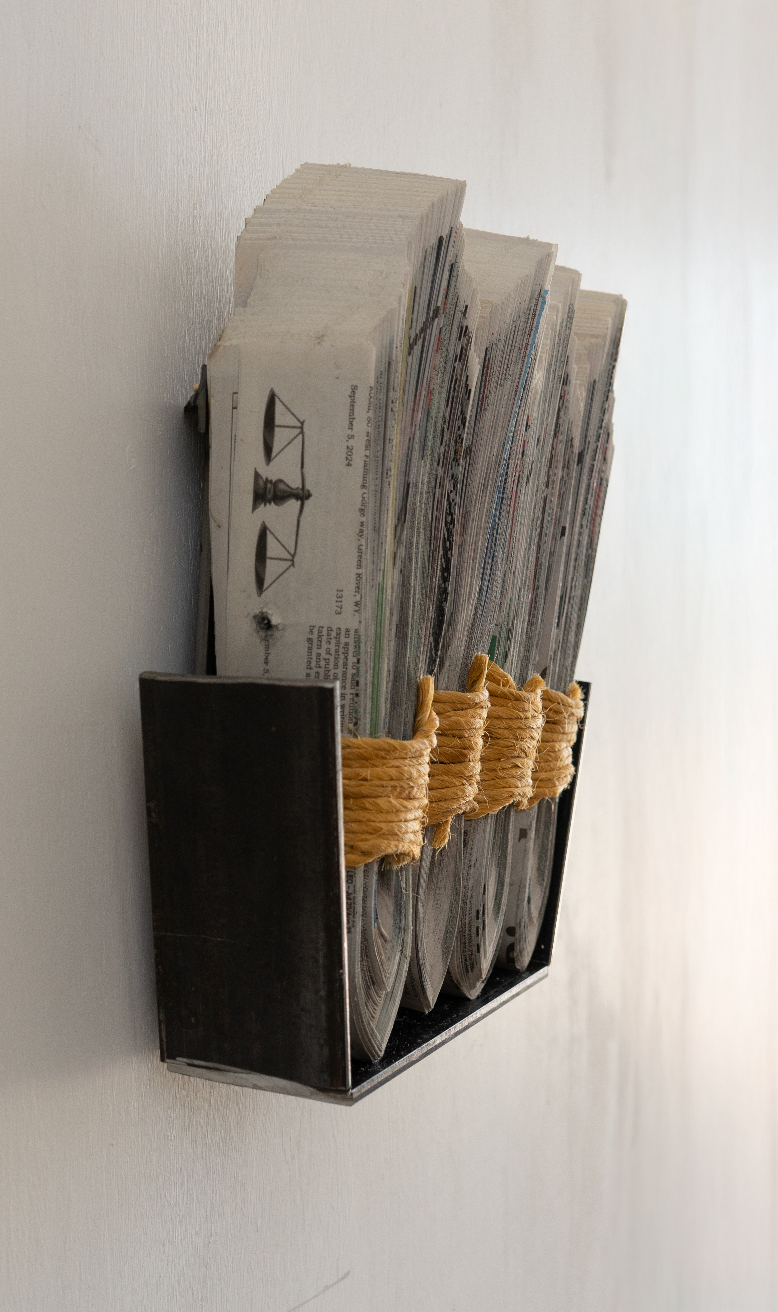 Newspaper, Baling Twine, Steel 13-1/2x10x3" 35x26x10CM and 13-1/2x13x3" 35x26x10cm Click on any image for a larger resolution. |
